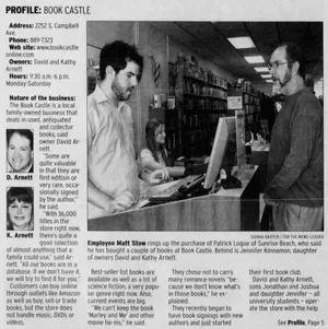 So the spring after the store burned down, we were prepared to launch our new Book Castle on South Campbell in the former home of IPA, the teacher supply store (this led to 8 years of people showing up looking for classroom decor) just south of Bass Pro on the opposite side of the street. We were much happier with our location; however, we were less than a mile north of Hooked on Books, which, in our estimation, was our imagined rival and the most successful general used bookstore in Springfield. My general belief was that if we could just get discovered by their customers, they would prefer us (this is not true of Bookmarx, but at Book Castle we had much more space and had an inventory 5 or 6 times as large as I have now, and had large mystery and romance sections and not just a store full of experimental fiction.) And we did build up a solid base of customer support, but we never completely tipped over into being as successful as I had hoped.